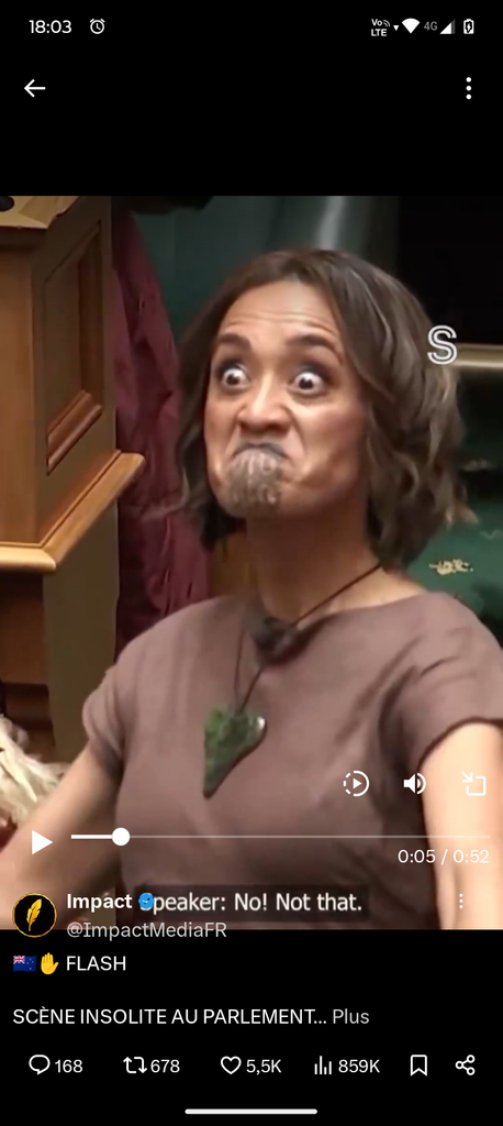 Les immondes porcs gras de la bourgeoisie angloise incapables de supporter la vue d’une Maori de 45 kilos qui fait le haka.