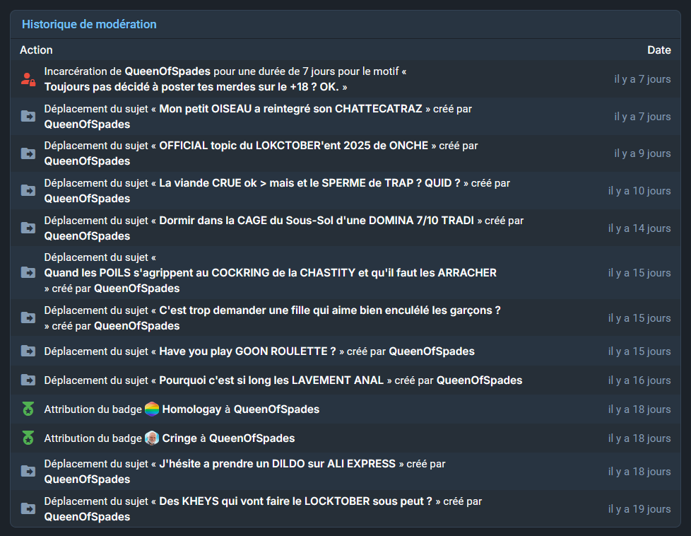 Déplacement du sujet «Vous aussi vous faites des dessins avec votre sperme» créé par Misereil y a 2 jours