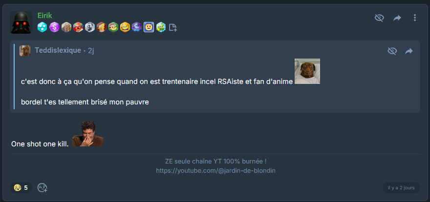 Bref vous êtes prêt a justifier tout et n'importe quoi pour bien vous faire voir de la mod et récolter badge et mansuétude