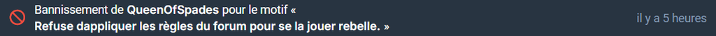en soit c'est juste un ban mais appliqué de manière progressive ( vu qu'il vient faire exprès à chaque fois pour défier la modération )