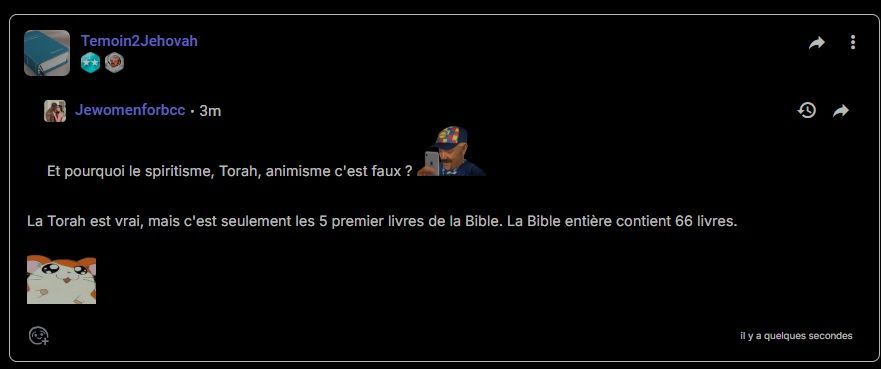 Et pourquoi le spiritisme, Torah, animisme c'est faux ?