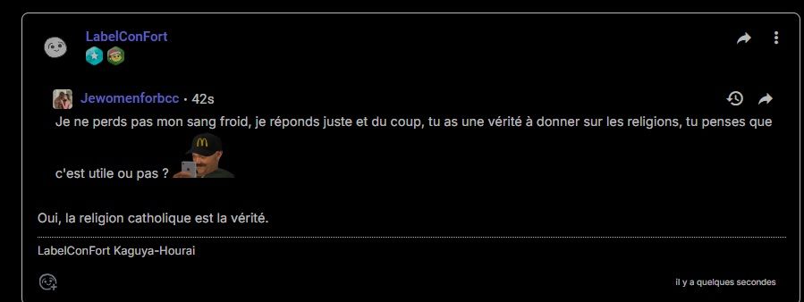 Je ne perds pas mon sang froid, je réponds juste et du coup, tu as une vérité à donner sur les religions, tu penses que c'est utile ou pas ?