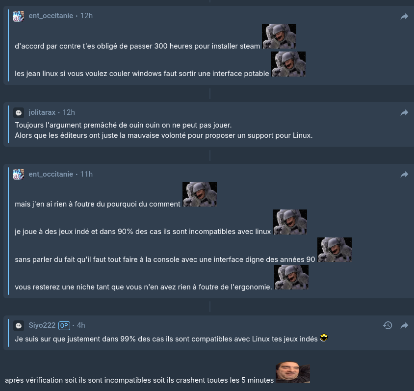 Et surtout quelqu'un qui a essayé Linux ne caricature pas autant en disant que c'est dur d'installer Steam alors que c'est littéralement aussi facile qu'installer une appli sur son iPhone