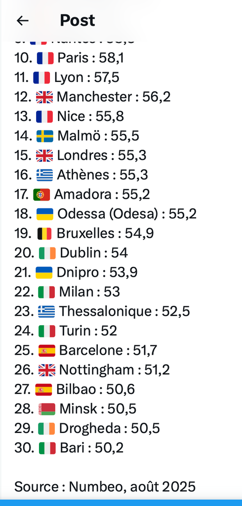 Oui, Numbeo repose sur des perceptions citoyennes recueillies via sondages anonymes