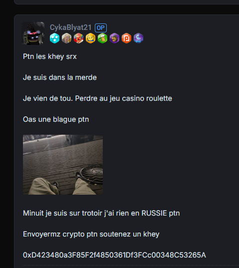 Moi j'suis pas une sous merde qui demande des crypto au forum pour aller gamble