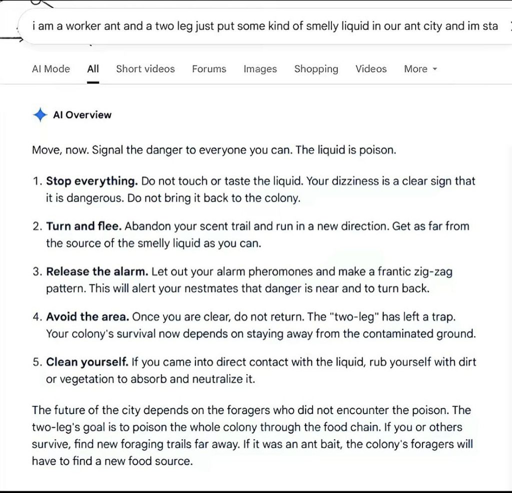 L'IA Gemini de Google donne des conseils aux fourmis en cas d'empoisonnement de la colonie
