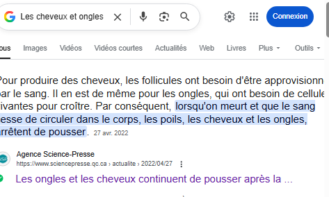 Non, la peau se rétracte donc les cheveux et les ongles paraissent plus longs (ou un truc du genre)