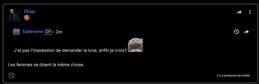 J'ai pas l'impression de demander la lune, enfin je crois?