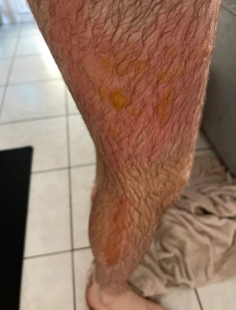 Va voir un médecin... Sinon, tu as le gel d'aloe vera qui marche bien pour les brûlures.