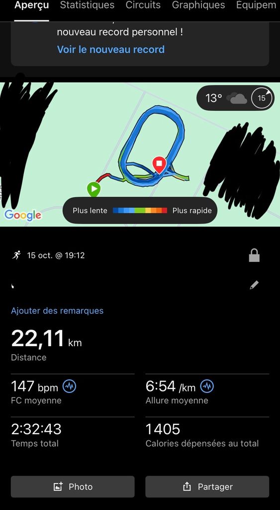 Allure de merde mais bon, de base je devais juste accompagner un pote pendant quelques km qui lui fait un marathon entier et du coup je l’ai accompagné sur 22 bornes