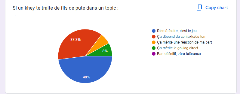Tu fais partie des 8% qui ont voté «goulag pour insultes», qui passent leurs temps à signaler alors qu'en face on ne te signale pas car ce n'est pas la culture du forum.