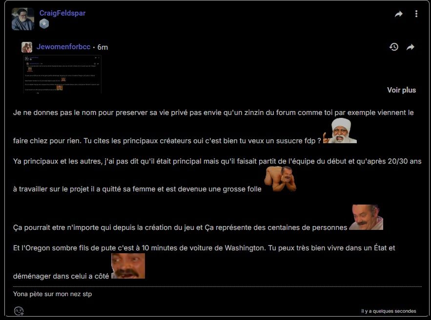 C'est marrant, j'ai cité les principaux qui font l'univers en question sans qui cela n'existerait pas, tu me parles d'un secondaire, au final, je précise les secondaires les plus influents mondiaux, leur temporalité où ils ne sont pas wokistes et toi, tu fais ta fixette sur un des types parmi la centaine sans le nommer et qui serait en Oregon et dans un délire minorité sexuelle...