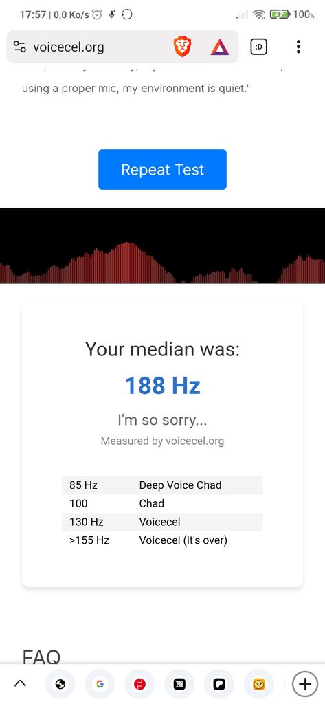 Là je l'ai fais au micro du téléphone à environ 20cm du dit micro, même si c'est vrai qu'IRL j'ai pas une voix très grave, le test doit pas être ultra fiable vu les différences de matos et dispositions