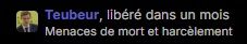 Heureusement que je ne mencace pas de mort et que je n'harcèle pas
