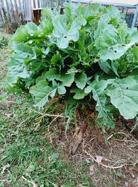 Le potager perpetuel est enfin productif , avec les choux Daubenton que produisent enfin assez (plus qu'il n en faut) pour ma famille :