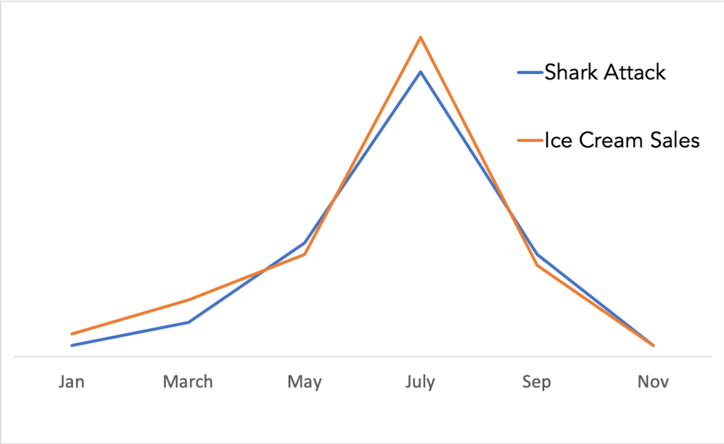 la vente de glace et les attaques de requins se corrobore