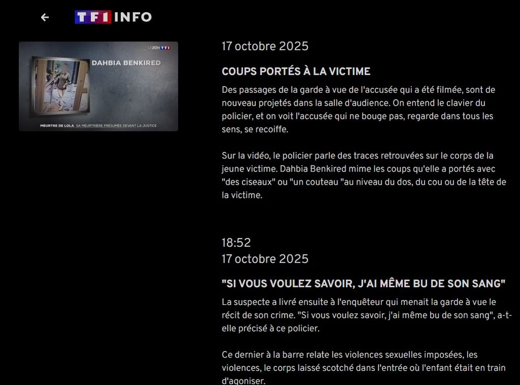 Je disais, le gouvernement a laissé venir, donc j'indique une responsabilité sur la politique de l'UE depuis des décennies à faire venir des migrants non occidentaux ainsi que la tolérance islamique et que la femme musulmane a tué une jeune fille. Je rapporte ce que le média a précisé concernant les aveux de la criminelle.