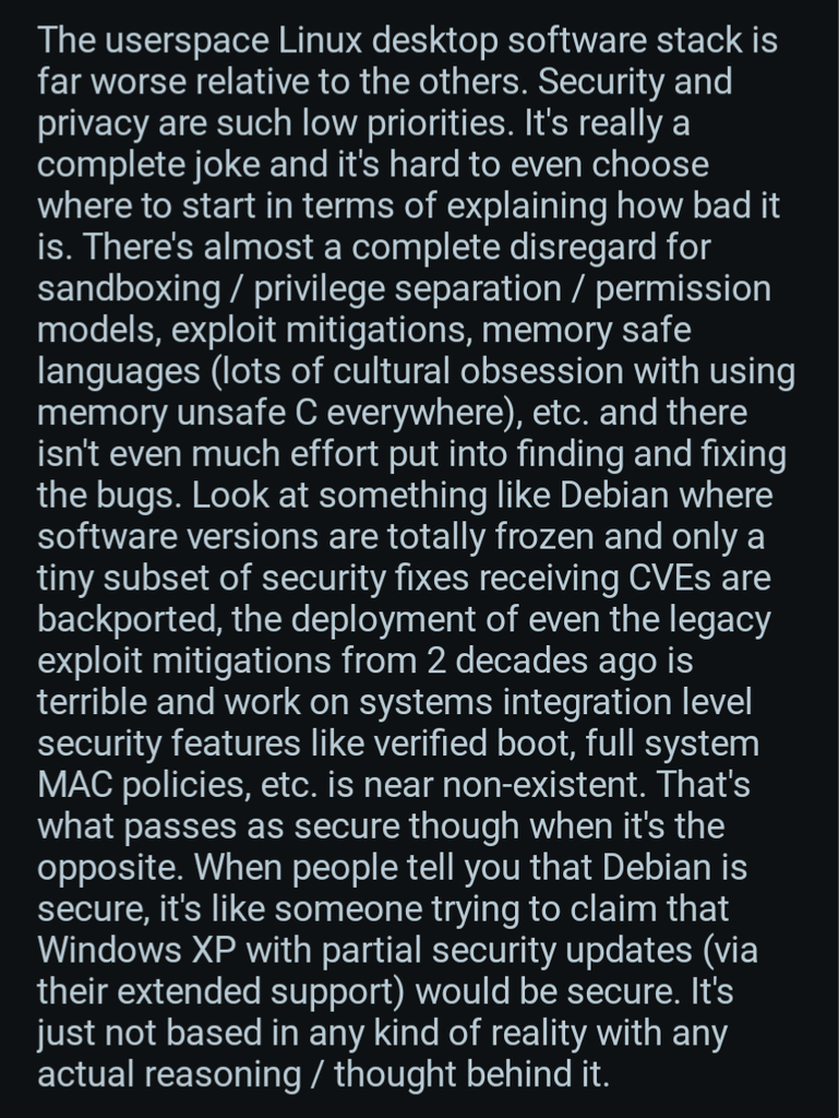 Oui bah regarde les autres sources, la il source juste les problèmes de Linux quoi c'est pas le but de la vidéode comparer aux autres OS ni même de l'article de Madaidan. merci Einstein
