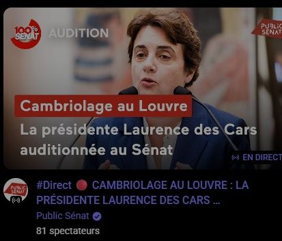 #Direct 🔴 CAMBRIOLAGE AU LOUVRE : LA PRÉSIDENTE LAURENCE DES CARS AUDITIONNÉE AU SÉNAT
