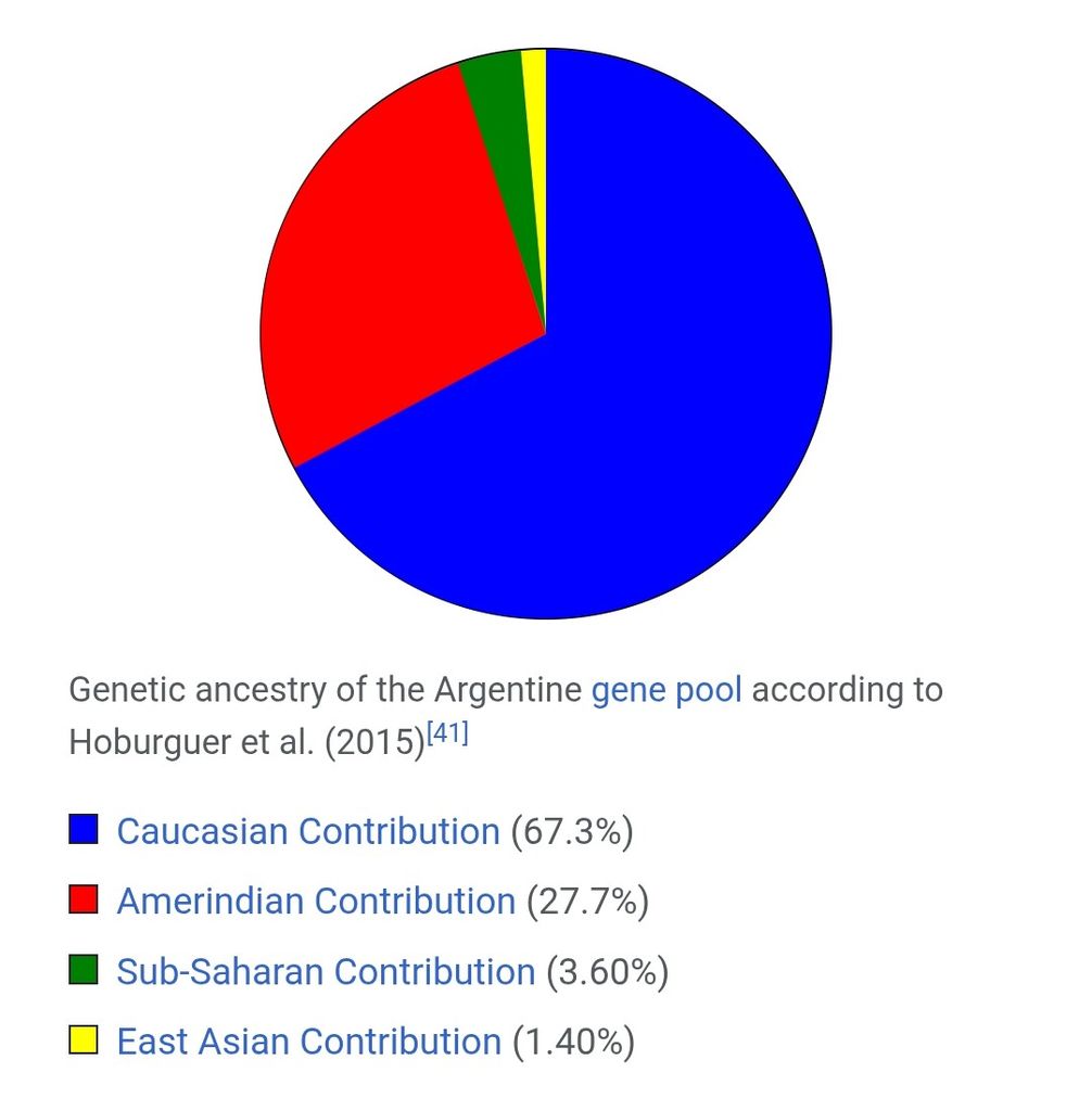 Environ 90% d'ADN européen chez l'argentin moyen il me semble