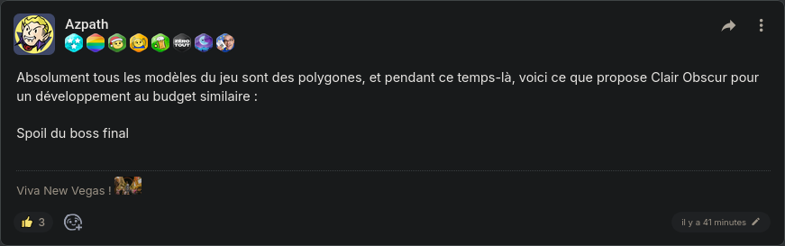 Absolument tous les modèles du jeu sont des polygones, et pendant ce temps-là, voici ce que propose Clair Obscur pour un développement au budget similaire :