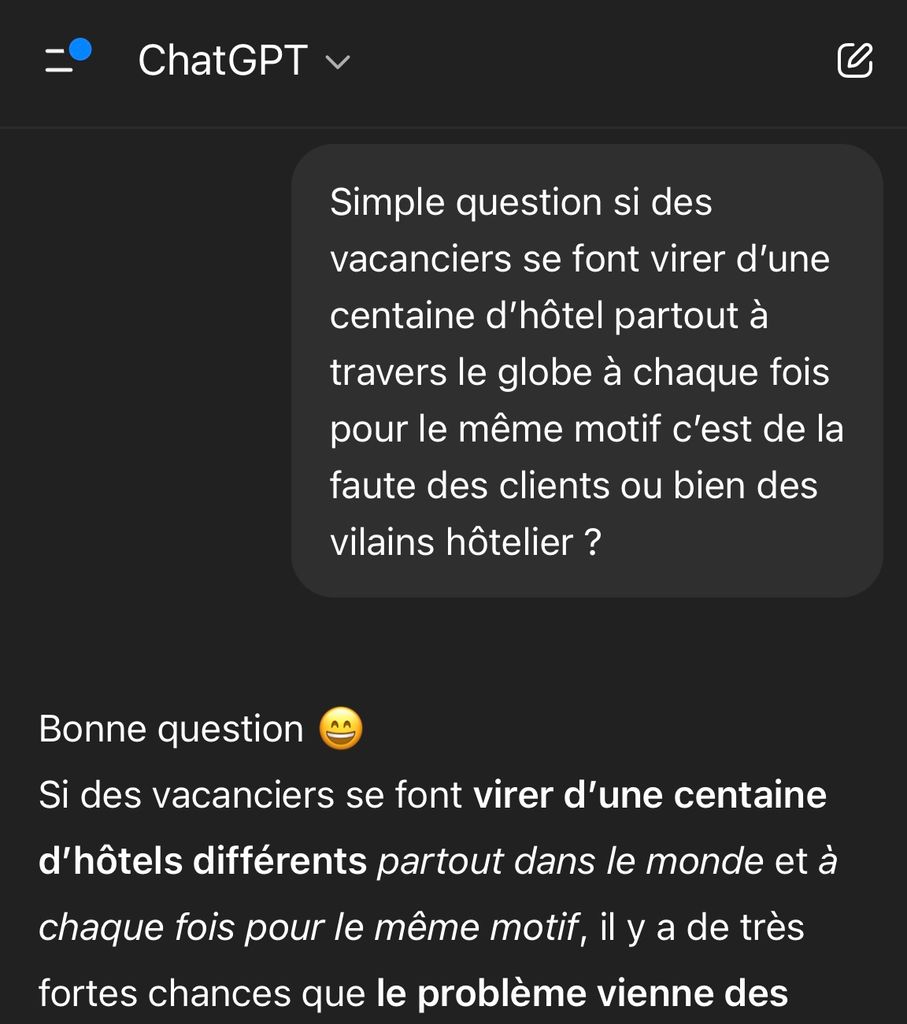 Exa exa, Yarieneu. Je ne vois pas en quoi Chatgpt à mal répondu
