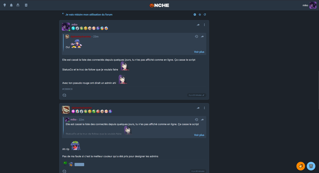 Petit script généré par IA (Claude Sonnet 4.5) qui vous permet de choisir la couleur de pseudo de votre choix. Les autres utilisateurs du script voient la couleur de pseudo que vous avez choisis.