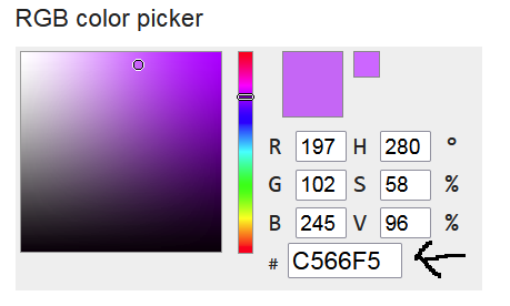 En l’occurrence le code à mettre en signature serait #C566F5.