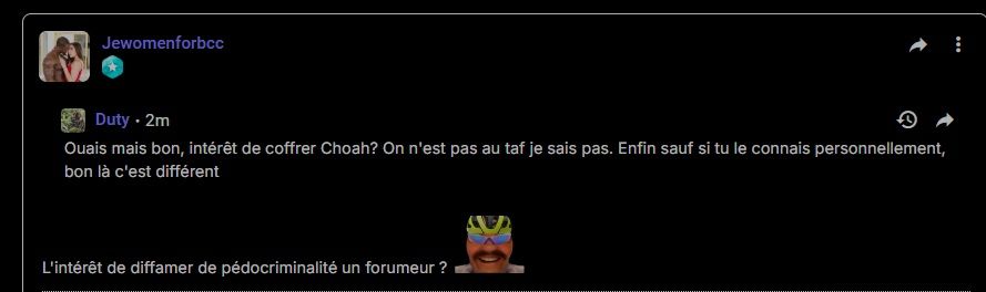 Ok, en vrai j'aime bien l'idée que si un jour un forumeur tente de me faire passer pour un pedocriminel un gars random viendra preuve à l'appui me défendre