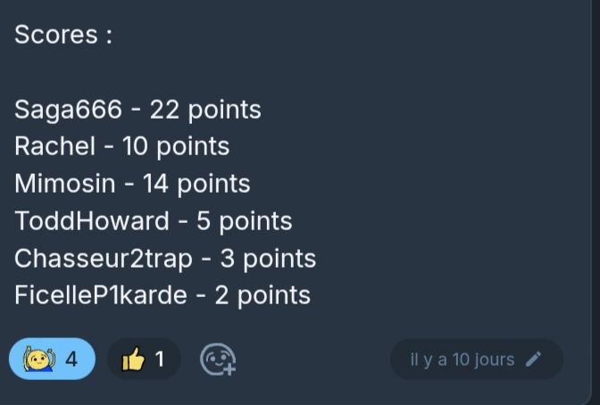 Nouvelle proposition, là je pense que c'est réellement giga dur. Respect si vous trouvez direct.