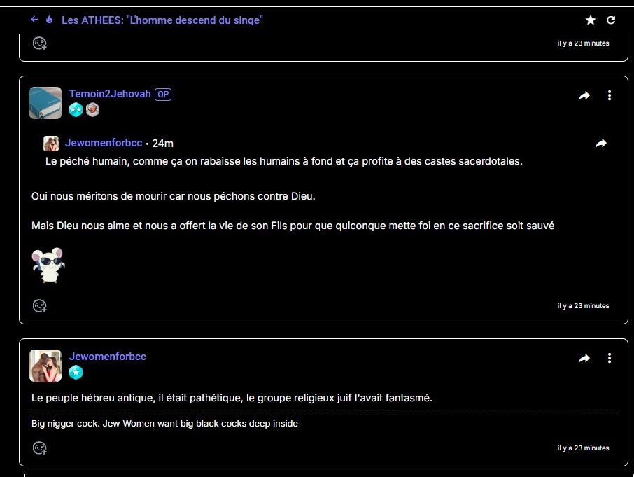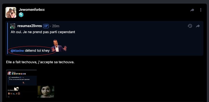 Je sais, je disais juste que j'étais pas là au moment où ça se faisait et merci d'avoir goulag l'autre qui avait diffamé.
