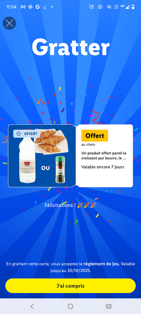 Oui a chaque fois que j'achète pour 3 euros j'ai un ticket a gratter sur l'appli et je gagne quasi a chaque fois ( part de pizza, pain au chocolat...)