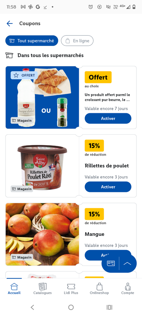 Tous les 2 ou 3 euros d'achat j'ai 1 euro de produit d'offert