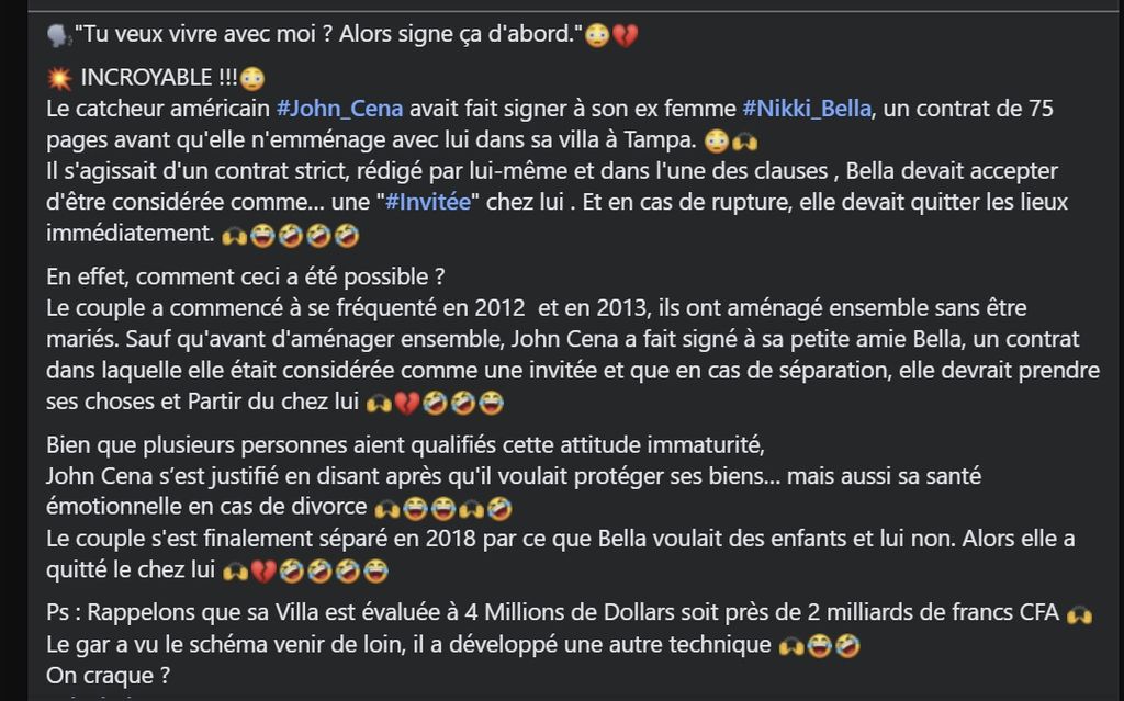 Je crois que c'était Rick ross qui avait épousé une femme. Un mois après elle divorce et part avec la moitié de sa fortune. Il vivait avec elle depuis des lustres. Mais un mois après le mariage elle quitte le navire avec un pactole monumental