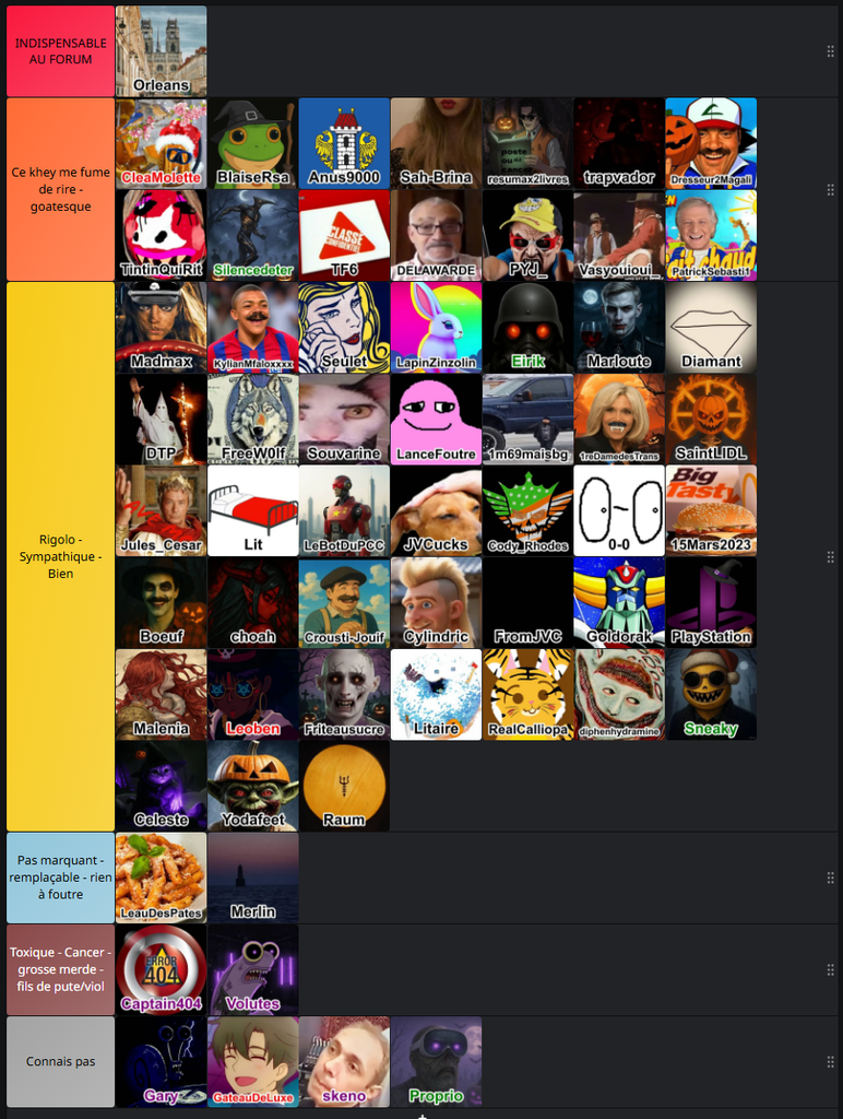 La Méga Tierlist des kheys à compléter vous même ! (le screen d'exemple ne montre que les 40 premiers)