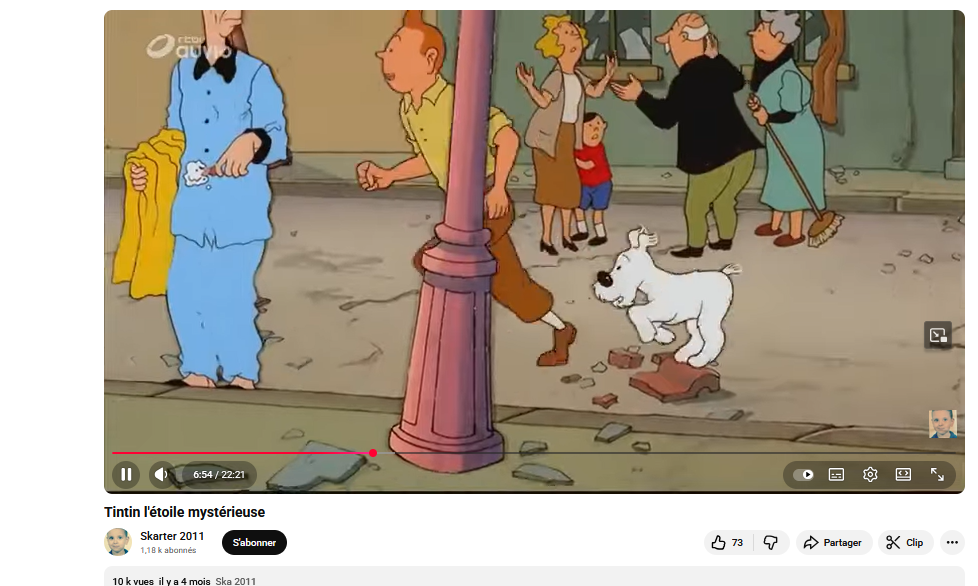 Un avertissement est lancé à Tintin par la fenêtre quelques secondes après que la vitre fut réparée