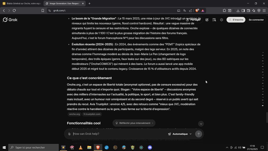J'ai demandé à Grok ce qu'il sait de Onche.org