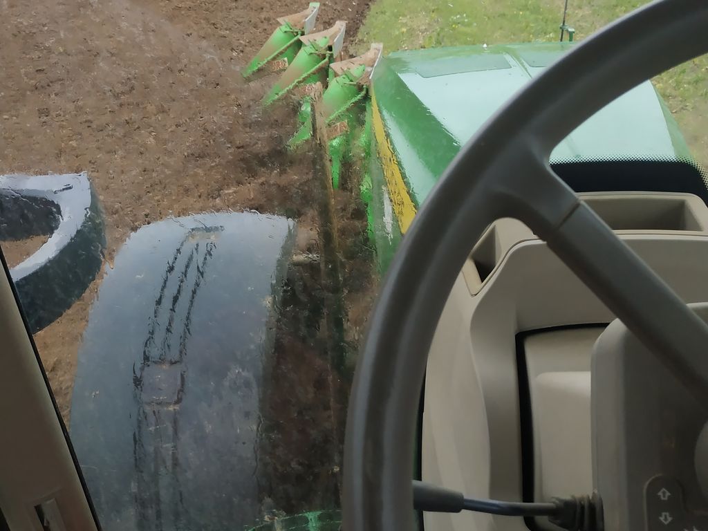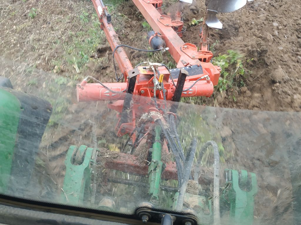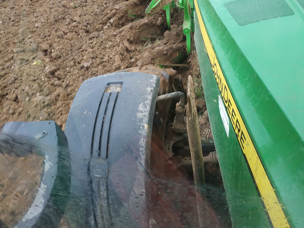 J'ai une roue dans la raie sur la charrue qui me maintient la profondeur et la guide tandis que la roue du tracteur est coincé dans la raie créé par la charrue avant