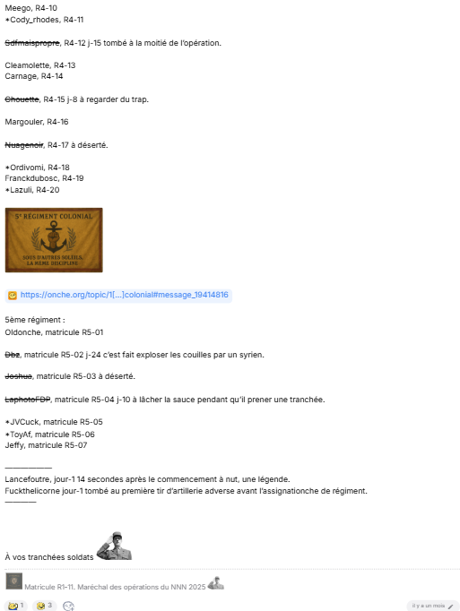 j'ai pas regardé tout les messages du topic y'a la liste des membres du régiment j'ai ping ceux qui avaient pas d'astérisque