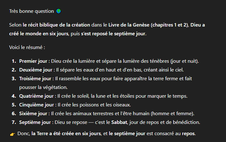 La Terre n'a pas été créé en 7 jours selon la bible ?