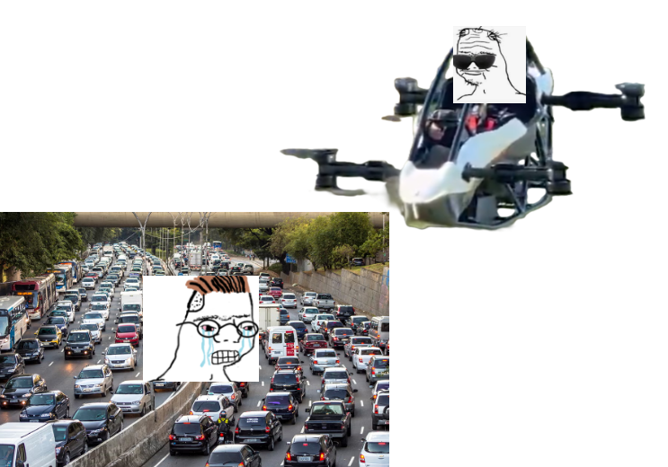 Tout le monde se moque des voitures volantes mais premier degré, ça permettrait de supprimer toutes ces foutues routes si on se déplaçait dans les airs avec des parkings sur le toit des bâtiments