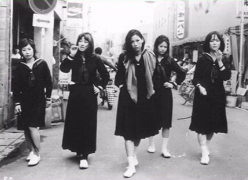 C'est une photo prise dans les années 70 d’un sukeban ( un gang de filles). C’est a partir de cette décennie que le phénomène des jeunes délinquantes est apparu au Japon.