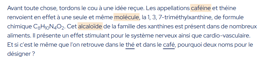 On t'as pas demandé la différence entre le THÉ ET LE CAFÉ le LOW, mais entre les THÉ ET UNE INFUSION
