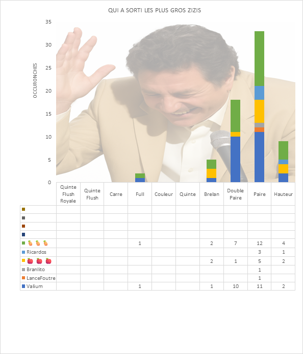 3ème : 🍎 🍎 🍎 concassé par 🍍🍍🍍 avec Brelan de 5 Hauteur Roi contre Paire de Roi Hauteur Valet à l'issue de la manche n°34