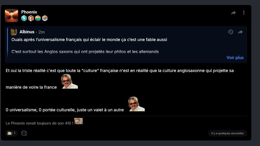 Et oui la triste réalité c'est que toute la "culture" française n'est en réalité que la culture anglosaxonne qui projette sa manière de voire la france