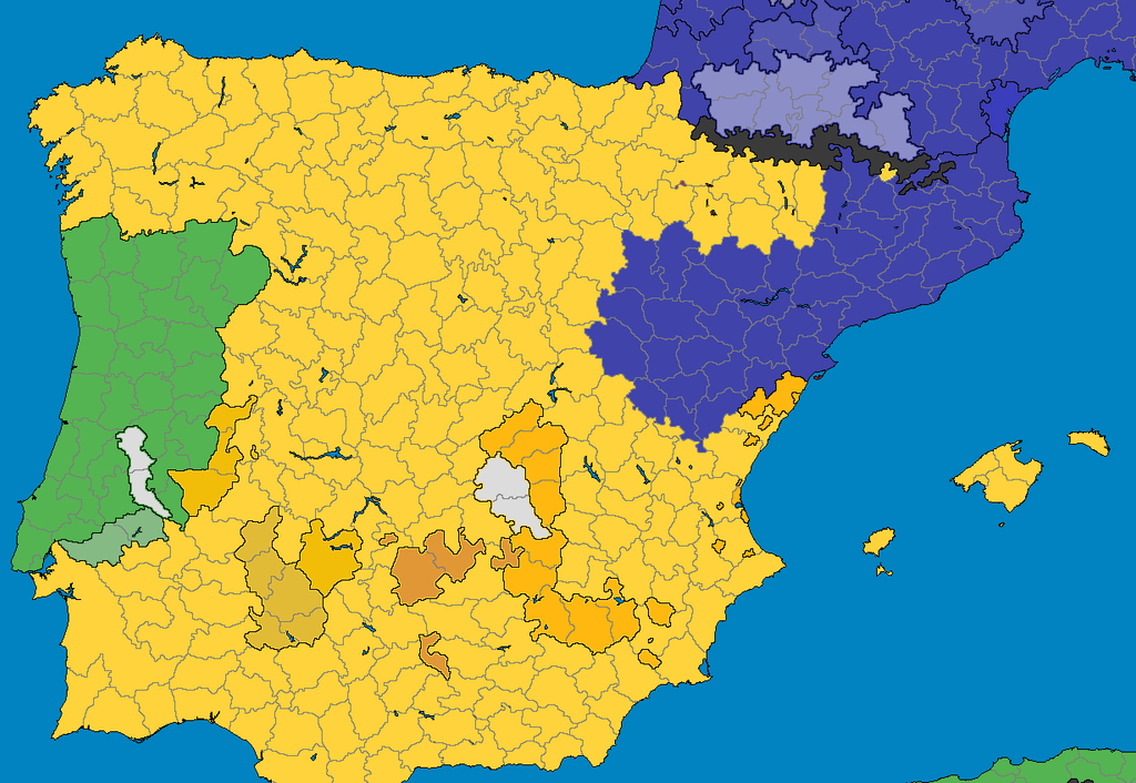 En Espagne, la situation n'est pas aussi favorable. Malgré les mesures défensives, l'armée Française avance sans peine et défait une première fois les troupes de Charles Ier qui sont contraintes de se replier vers Saragosse. Cinq longs mois d'échanges intenses résultent par la prise de la ville par les Français. Deux cités importantes sont déjà sous le contrôle de François Ier qui semble inarrêtable sur le front ibérique. Son prochain objectif est Madrid.