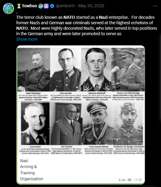 Ils disent aux conservateurs et natios que l'OTAN, c'est "progressiste" et un truc de LGBT et aux progressistes que l'OTAN, c'est une structure nazie...