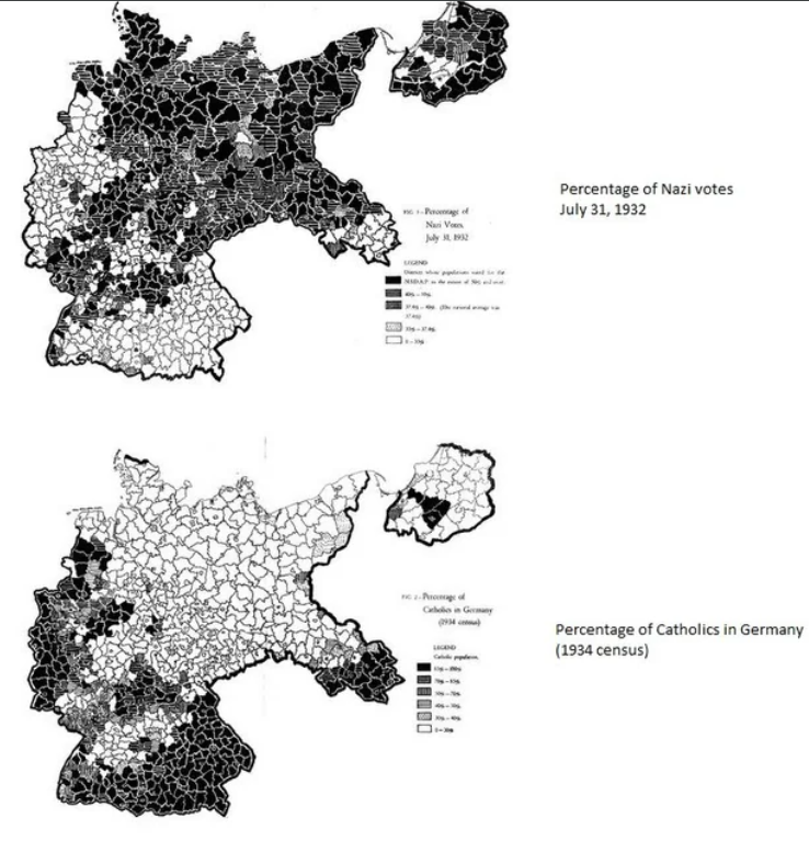 Hitler a été élu par les Allemands protestants comme l'indique la carte ci-dessous.