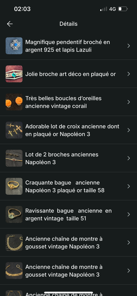 Par contre je peut te dire c’est des bijoux et en moyenne c est 10€ le bijoux et des fois je fait des lots