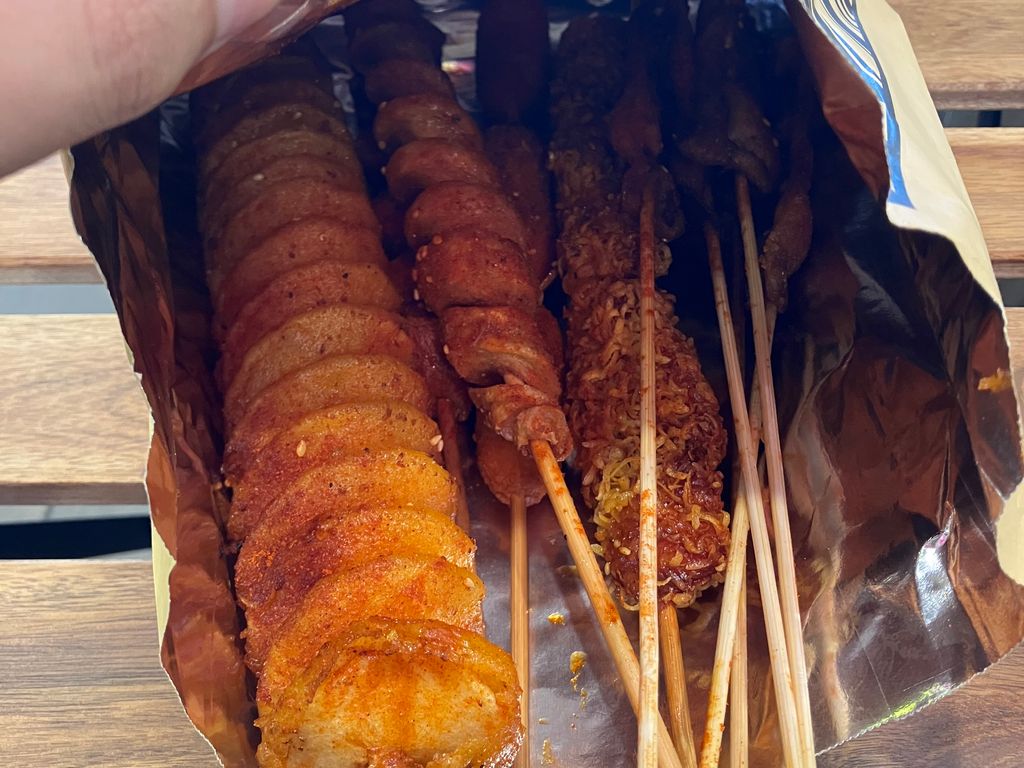 J’ai pris des peaux de poulets des patates, du gluten du tofu etc…